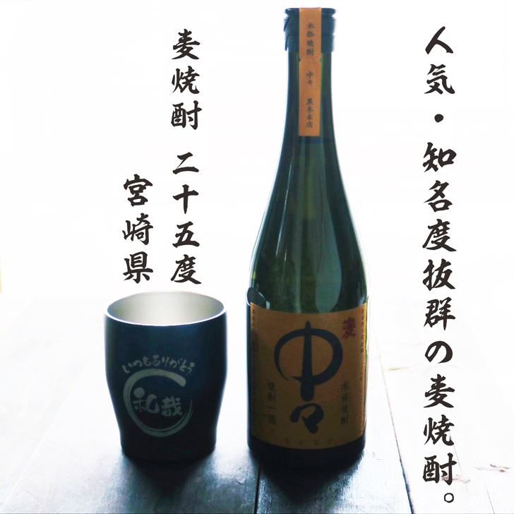 人気・知名度抜群の麦焼酎「中々 なかなか」は自家栽培の二条大麦を原料に全国でもトップクラスの醸造技術で仕込まれた焼酎。昔から人気が高く、ご自宅用、贈答用など幅広く選ばれる1本です。